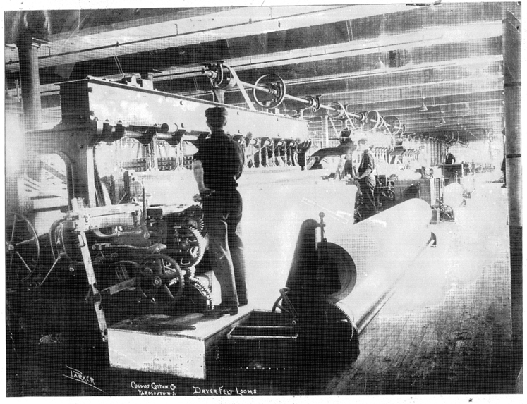 at Cosmos Cotton Co. Later to become Dominion Textiles, this earlier version of the company was in existence from 1902-1925. These looms were said to be the largest in Canada at this time. Photo courtesy of Yarmouth County Museum