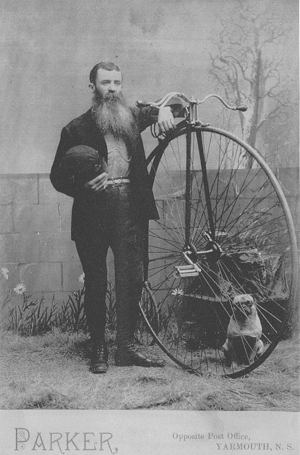 Photographs from the Yarmouth County Archives such as this "Unkown Man" on a Penny Farthing taken in the late 1880's are on display.