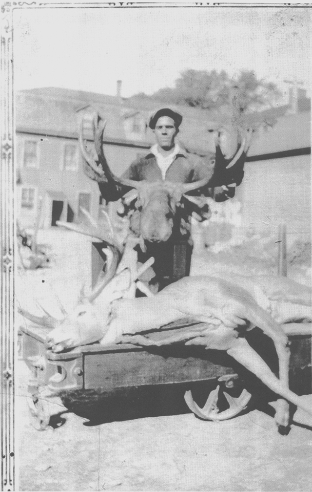 Peter Hartley with moose. (cica 1940's)